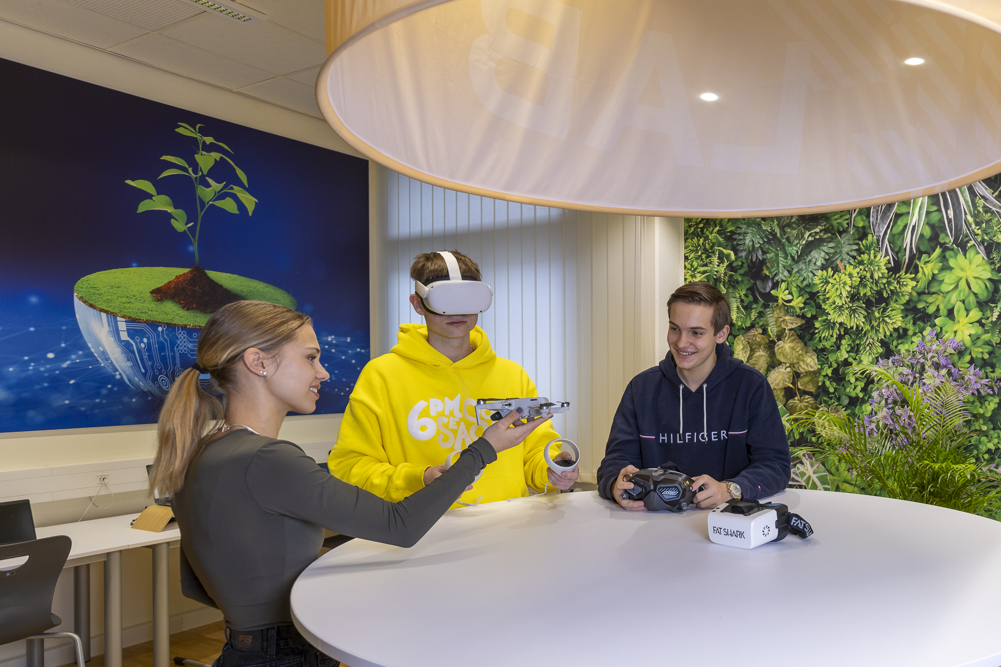 For this purpose, the school has set up its own classroom called “Future Lab,” where students have access to a wide variety of technical equipment, such as camera drones, VR glasses, and 360-degree cameras.